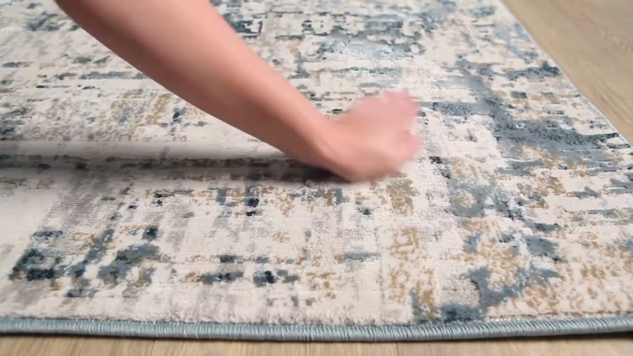 A painterly abstract design in slate blue, gray, and beige — the Larne brings artistic, distressed character to modern and contemporary spaces.