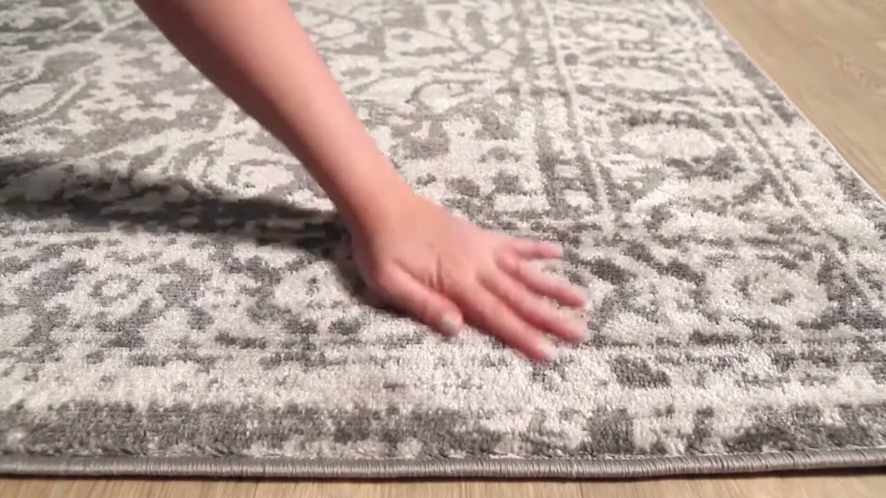 Classic Persian medallion design in a faded gray and white palette — the Laverock delivers heirloom style with stain-resistant polypropylene durability.