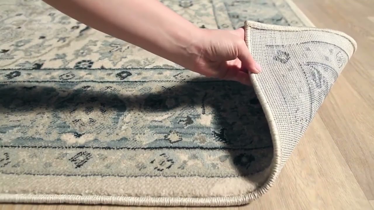 A classic Persian medallion design in soft cream, blue, and gray — intricate floral scrollwork that customers say looks even more stunning in person.