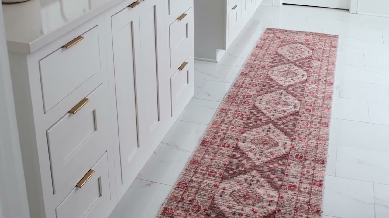 A faded Persian medallion in soft gray, cream, and muted red — with the bonus of being fully machine washable. Classic looks, modern practicality.