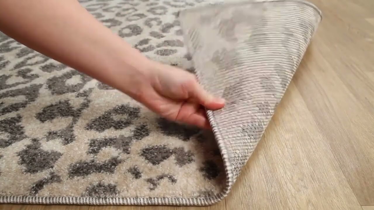 A neutral leopard print that goes with everything — cream and gray tones, stain resistant, and even prettier in person than in photos.