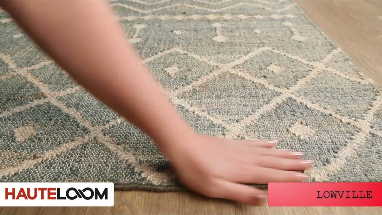 The Lowville Jute Area Rug brings a relaxed, globally inspired look to any room with its hand-woven flatweave construction and eye-catching geometric pattern. A muted blue-gray base is layered with cream diamond lattice motifs, chevron bands, and dotted accents — giving it a distinctly Moroccan-boho feel that's both stylish and grounded. Made from 100% natural jute fiber in India, this rug has an earthy, organic texture that pairs beautifully with wood tones, linen, and rattan.