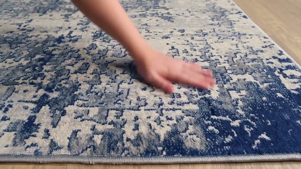 Cool blue and gray tones meet an artisan-inspired distressed abstract pattern — the Lubao brings effortless modern style with stain-resistant durability built right in.