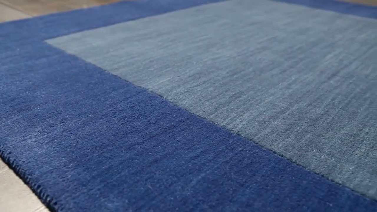 The Macedon Blue Bordered Wool Area Rug is a study in calm, confident simplicity. A rich cobalt-to-royal blue border frames a softer, lighter blue center field, creating a tone-on-tone look that feels both modern and timeless. Hand loomed in India from 100% wool, this rug brings genuine texture and warmth underfoot — the high pile (0.63 inches) gives it a plush, cushioned feel that customers love in playrooms, living rooms, and bedrooms alike.
