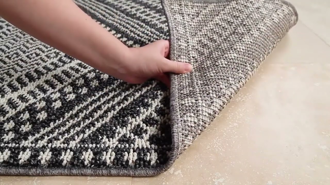 A bold black and white tribal diamond rug that looks even better in person — intricate Moroccan-inspired geometry, stain-resistant polypropylene, and built for everyday life.