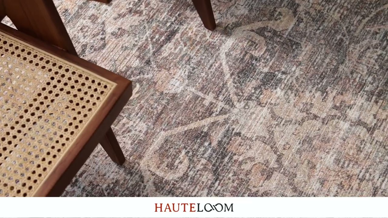 warm paletteA warm, earthy palette of deep brown and soft gray forms the base, layered with creamy beige and taupe accents that give the rug its signature faded, antique feel — like a treasured heirloom that's been loved for decades.