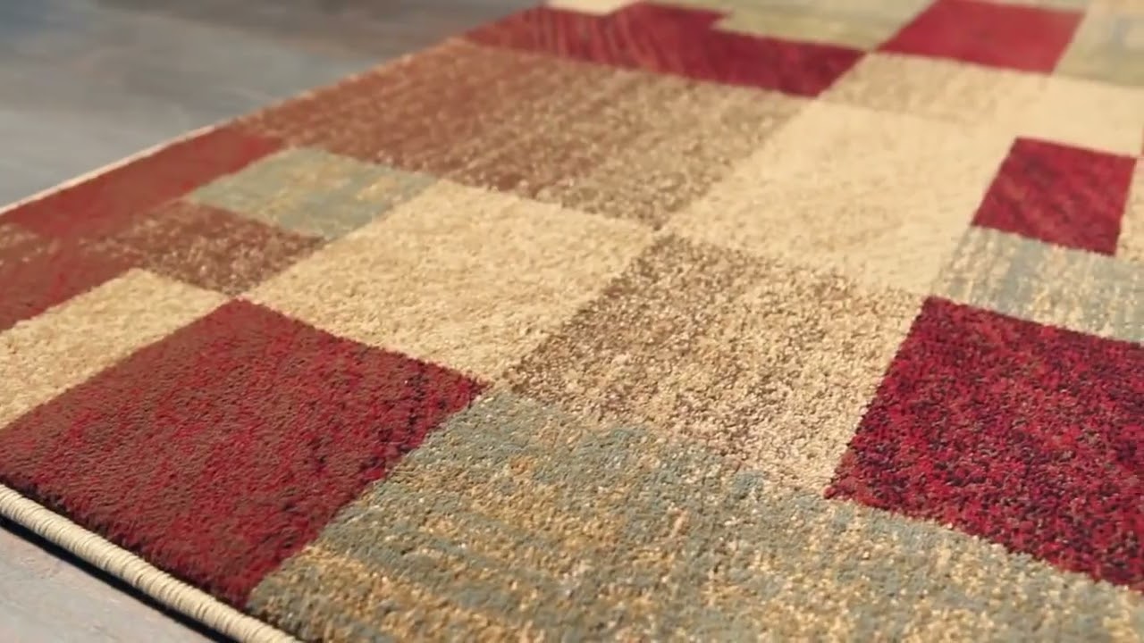Bold mosaic squares in rich red, warm beige, and earthy brown make the Maumee a standout modern rug that's as durable as it is stylish — stain resistant and built for everyday life.