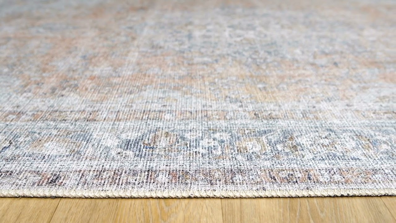 A beautifully faded Persian medallion design in dusty blue, beige, and gray — and it's fully machine washable. Timeless style that actually survives real life.