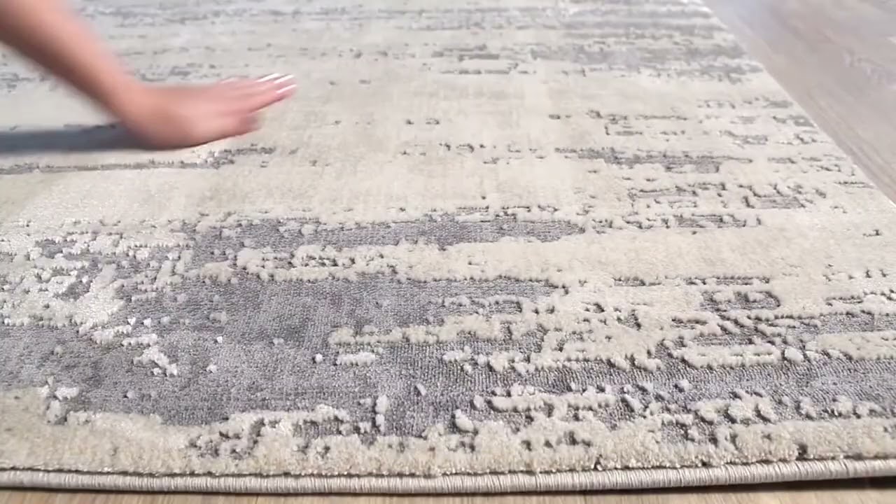 A perfectly neutral abstract rug in warm beige and layered gray — the kind of versatile piece customers love so much they buy it twice.