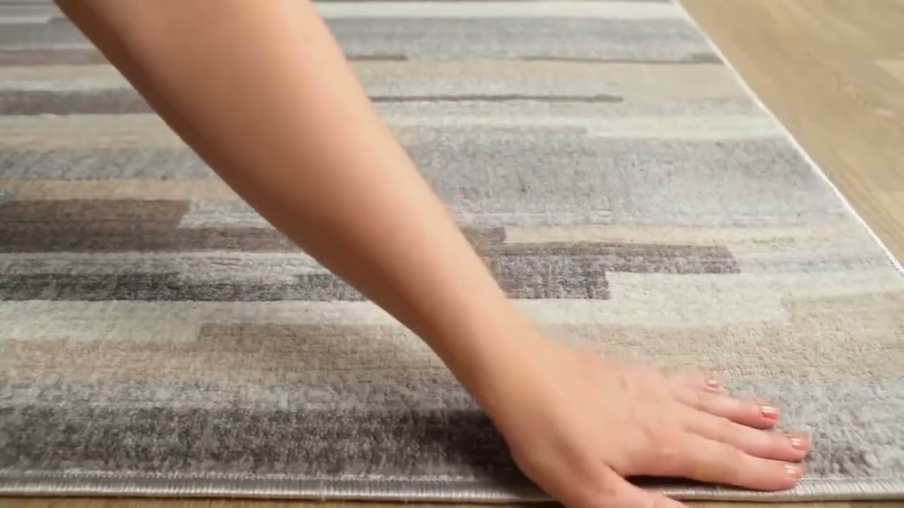The Monkland Area Rug brings a calm, sophisticated energy to any room with its layered horizontal stripe pattern in soft shades of gray, beige, cream, and taupe. The broken, staggered lines create an abstract, painterly effect that feels both modern and timeless — perfect for contemporary living rooms, bedrooms, or open-plan spaces that need a grounding anchor without loud color. Machine woven from 100% polypropylene, this rug is built for real life: stain resistant, durable enough for high-traffic areas, and easy to maintain with professional cleaning.