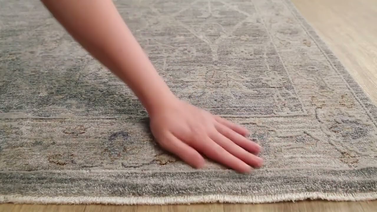A classic Persian medallion in muted gray, cream, and soft blue — the Monterey is surprisingly soft, beautifully detailed, and works in virtually any room.