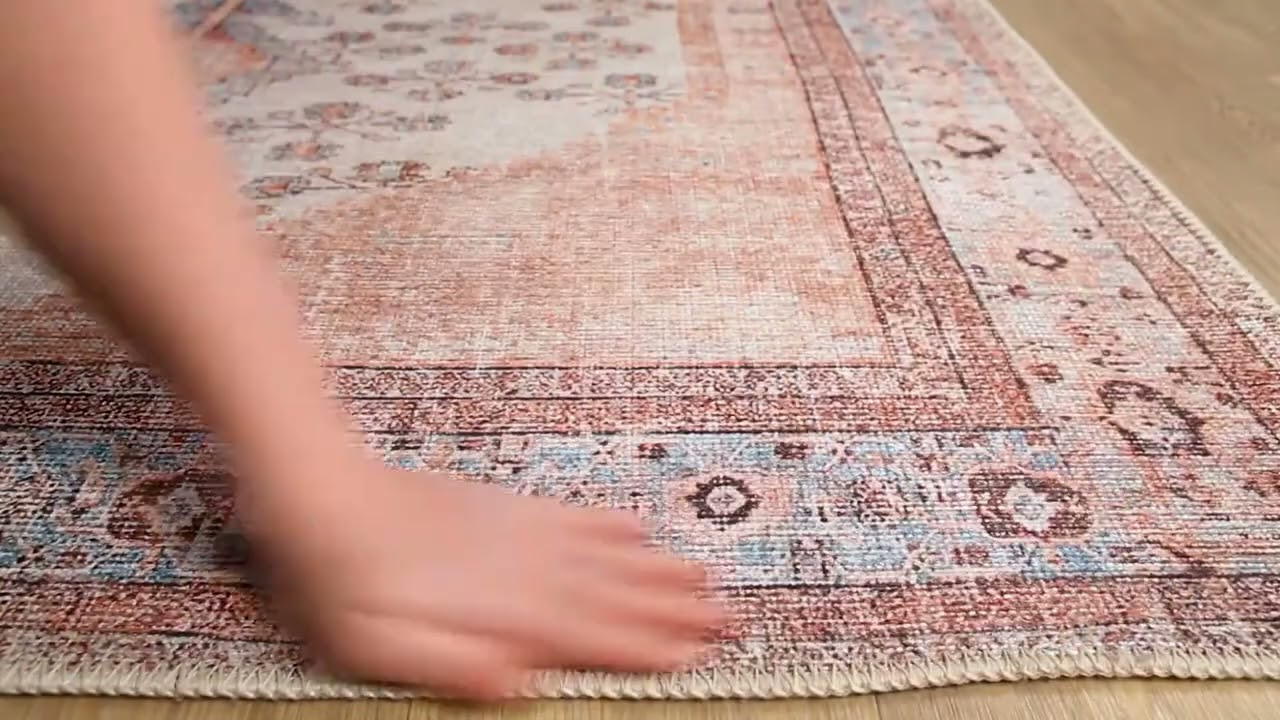 A softly faded Persian medallion design in cream, dusty blue, and blush — with the rare bonus of being fully machine washable. Vintage charm, zero fuss.
