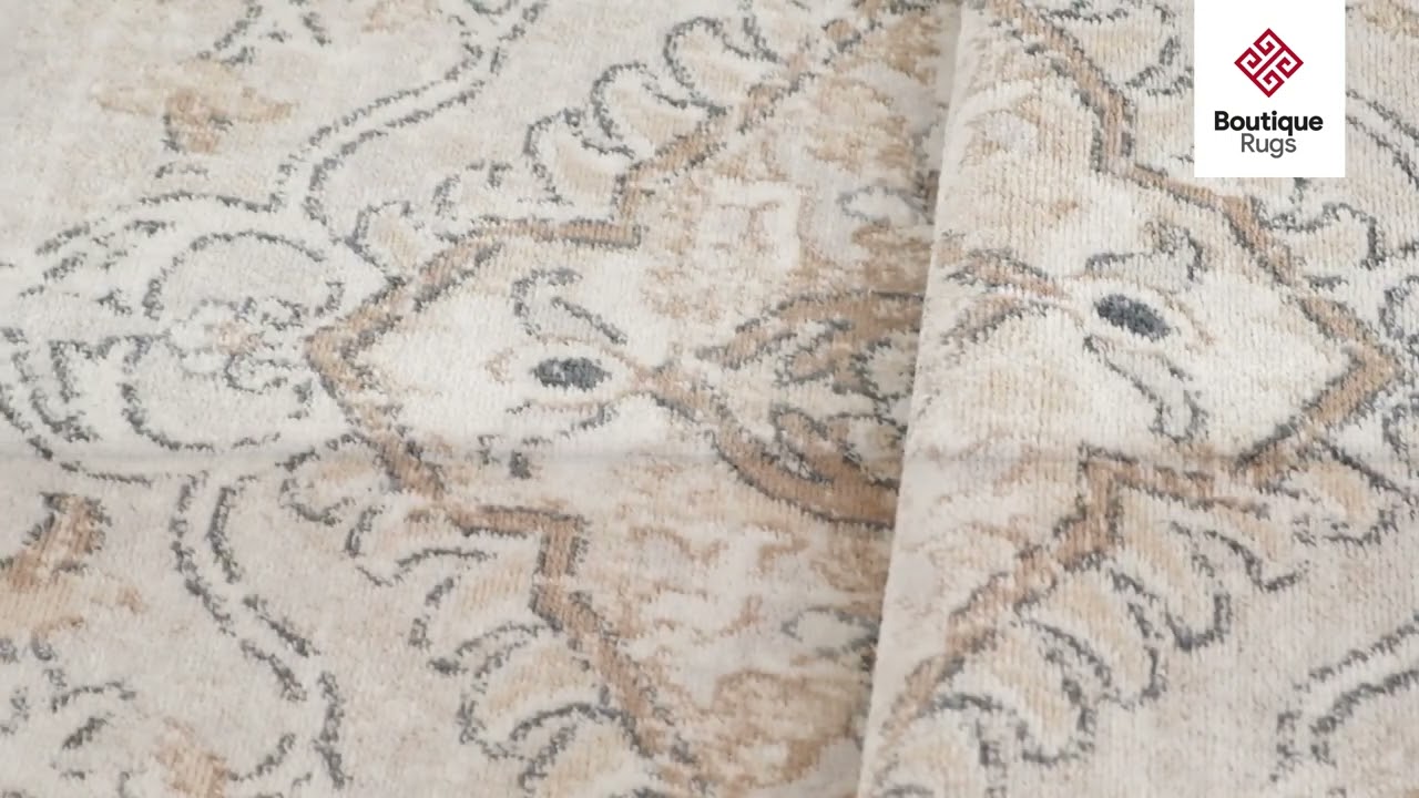 A softly faded medallion design in warm beige, cream, and gray — the Mudgee brings classic Persian style to any space without overpowering it.
