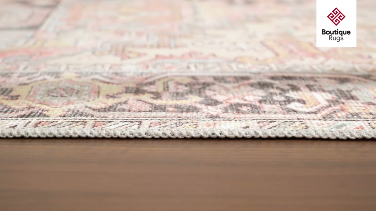The no-pile construction means it lies flat immediately and won't snag furniture legs. Spot clean with mild detergent and cold water to keep it looking fresh. Whether you're drawn to traditional Persian aesthetics or simply love the soft blush and gray color story, the Nadia rug adds warmth and character to any space without overwhelming it.