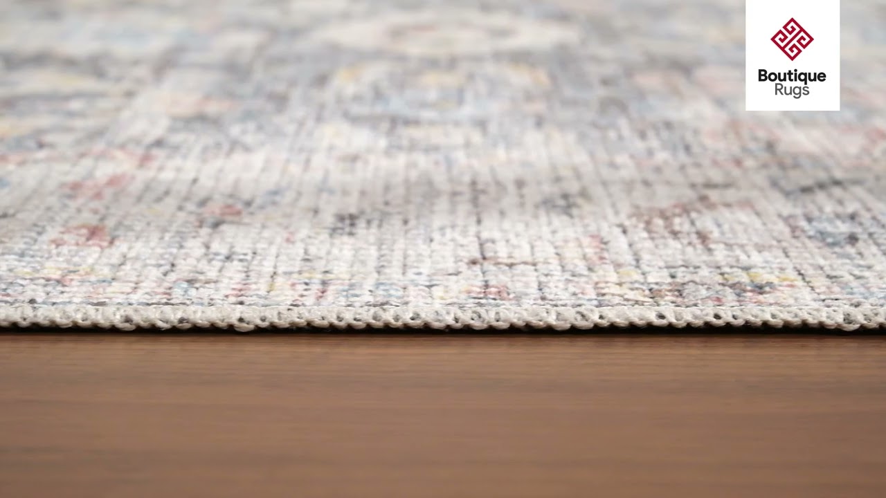 A vintage-inspired Persian floral in soft gray, blue, and cream — fully machine washable and built for real life. Classic looks, zero fuss.