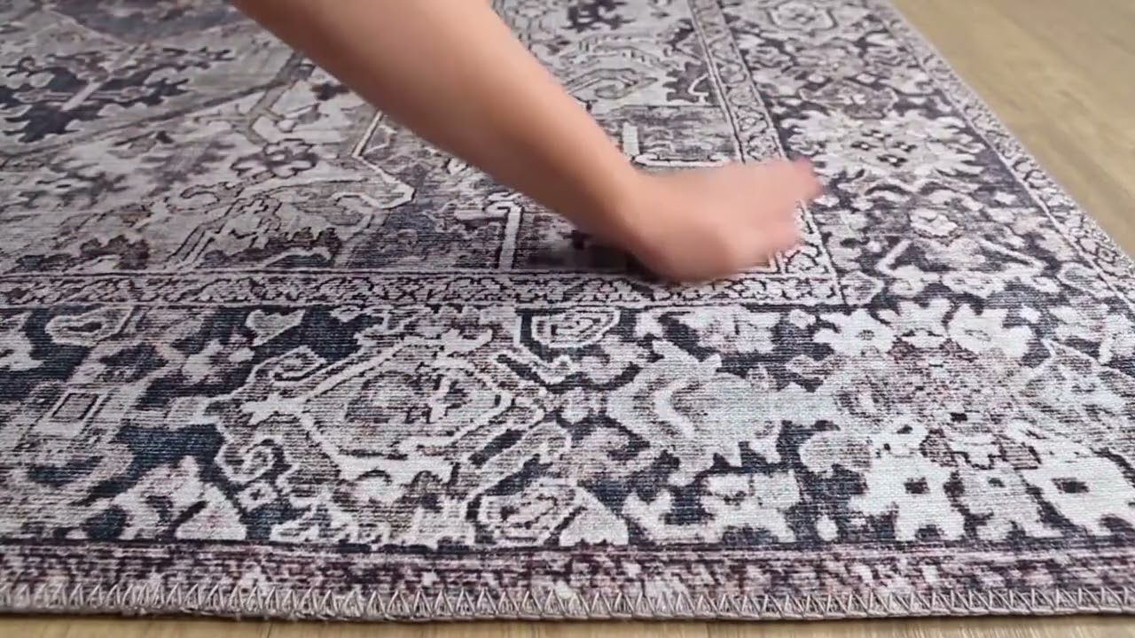 A stunning Persian medallion design in cool gray and navy — intricate, elegant, and built tough enough for everyday life. Customers say it looks even better in person.
