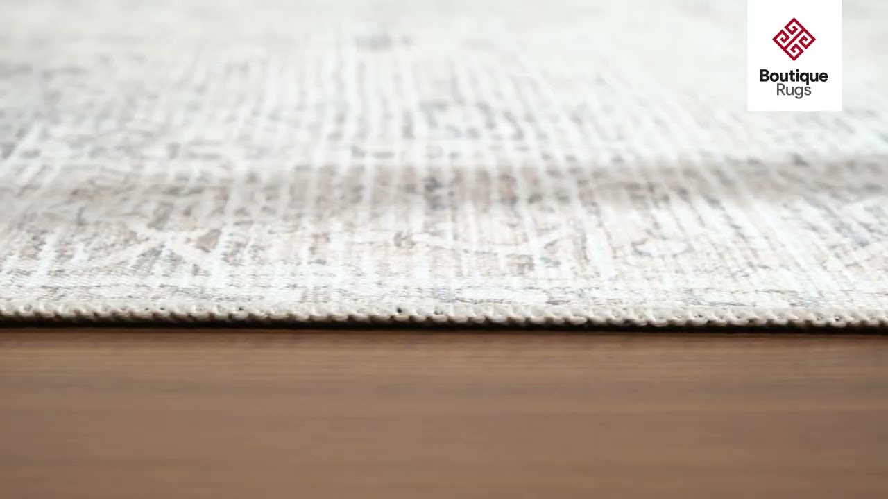 At just 0.2 inches thick, it lays flat easily and works beautifully as a layering rug over natural fiber rugs. The fringe edge detail adds a classic finishing touch that nods to handmade craftsmanship. The muted, neutral tones — cream, soft gray, and hints of dusty purple and taupe — make it incredibly versatile, pairing effortlessly with both modern and traditional interiors.