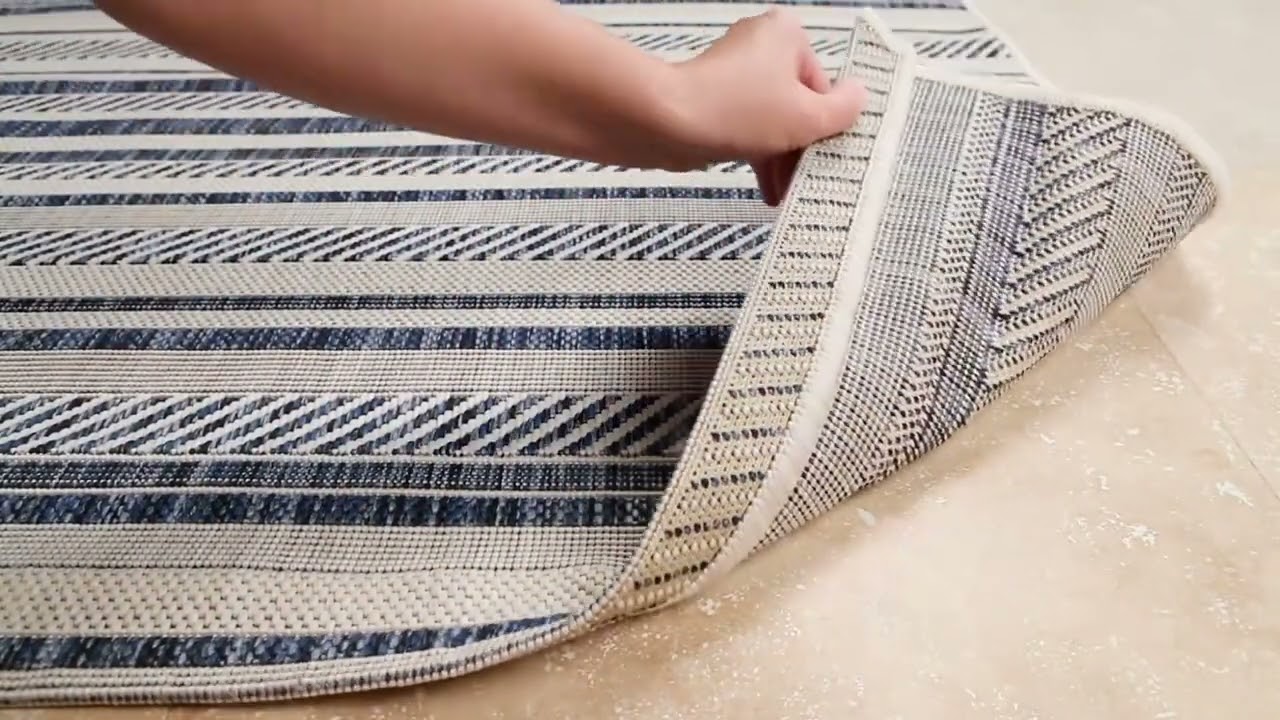 At just 0.16 inches thick, it lays flat easily and works great with robot vacuums. Customers love it for outdoor entertaining spaces, noting the blue tones read as a rich in-between of navy and royal blue in person. Hose it off when it gets dirty and hang it to dry — maintenance doesn't get easier than that.