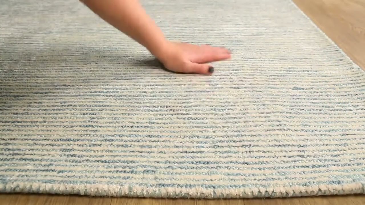 The Orcas Ice Blue Wool-Blend Area Rug brings a calm, airy energy to any room with its softly blended light blue, aqua, and cream tones that shift subtly across the surface like a gentle watercolor wash. Hand tufted in India from a luxurious combination of 60% wool and 40% viscose, this rug offers a beautifully soft, medium-pile surface that feels wonderful underfoot. The abstract, almost striated texture gives it a quietly modern character — no bold pattern, just a sophisticated play of cool coastal hues that works effortlessly in contemporary, minimalist, or transitional interiors.