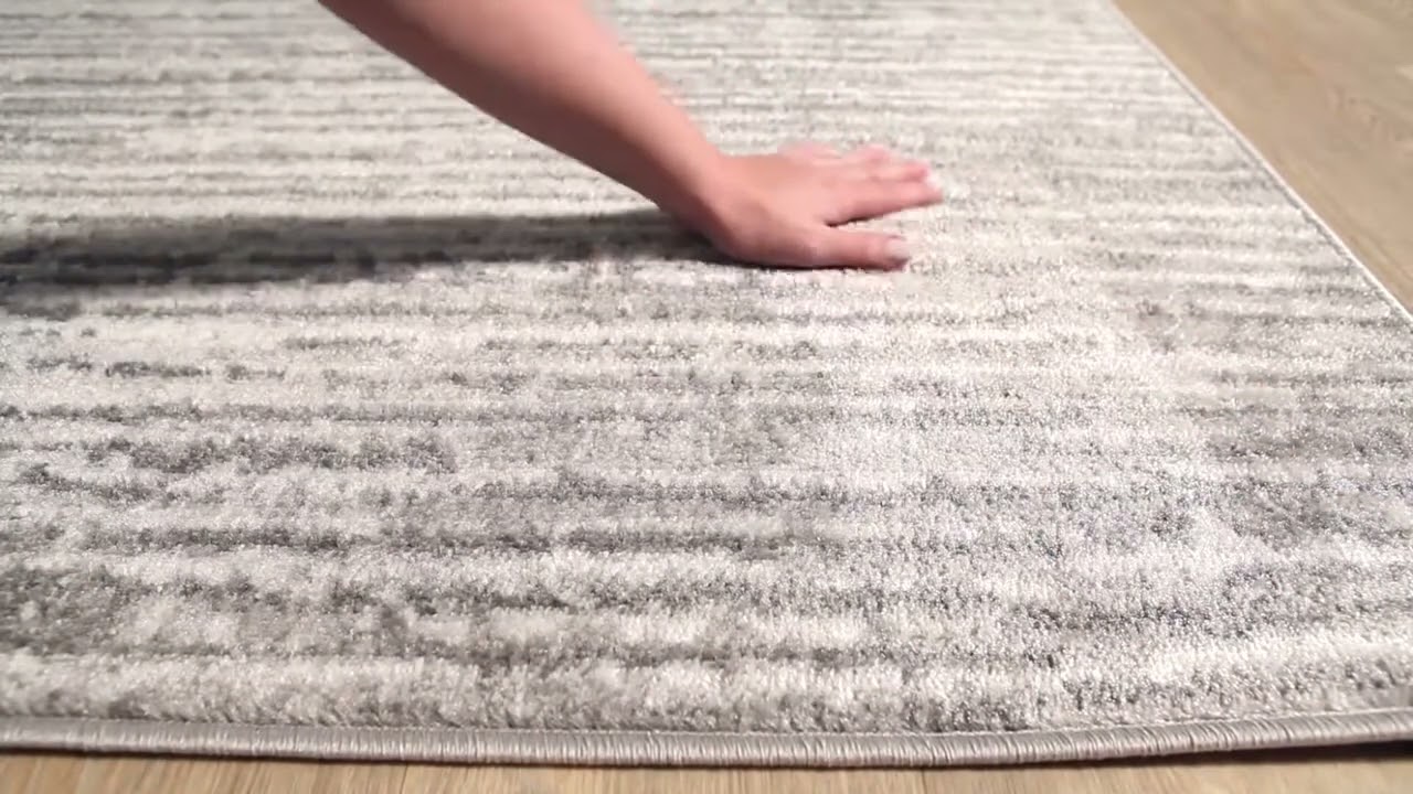 The Oshkosh Area Rug brings a quietly sophisticated look to any room with its tone-on-tone gray palette and subtle horizontal striped texture. The surface plays with light and dark gray tones layered over a soft white ground, creating an abstract, almost distressed effect that shifts in appearance depending on the angle you view it from — customers love this quality. Machine woven from 100% polypropylene, it's built to handle real life: stain resistant, easy to spot clean, and tough enough for high-traffic areas like entryways, mudrooms, and living rooms.