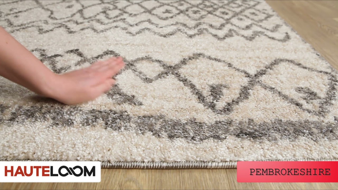 The Pembroke area rug brings an effortlessly global, Moroccan-tribal aesthetic to any room with its hand-drawn-style geometric diamond lattice and bold zigzag border bands rendered in soft charcoal gray on a warm cream base. At 0.71 inches of high pile and 0.87 inches total thickness, this plush polypropylene rug feels luxuriously soft underfoot while remaining stain resistant and durable enough for everyday living. Machine woven in Turkey, it captures the artisanal character of a Berber-style rug with the practical benefits of a modern synthetic construction.