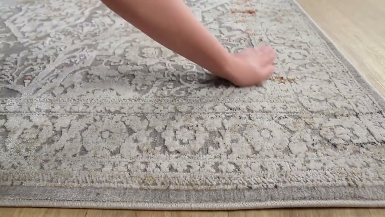 The Petersburgh Area Rug brings timeless traditional style into your home with a beautifully distressed, faded finish that gives it an antique, lived-in character. A classic central medallion surrounded by intricate floral scrollwork and a layered border fills the design, rendered in a soft palette of light gray, cream, and white with subtle rust and dusty blue accents that add warmth and depth without overwhelming the space. Machine woven from a durable blend of 70% polypropylene and 30% polyester, this medium-pile rug is built to handle everyday foot traffic while maintaining its lustrous sheen.