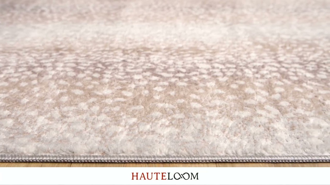 The Pointblank Area Rug brings one of the most sought-after animal print designs into your home in the most wearable, neutral palette imaginable. A soft tan and warm gray base is covered in an allover antelope-inspired spot pattern, with subtle vertical ombre columns that shift between sandy beige and cool silver-gray — giving the rug depth and movement without ever feeling loud. It's the kind of print that reads as sophisticated rather than bold, making it incredibly easy to style in a bedroom, living room, or entryway.