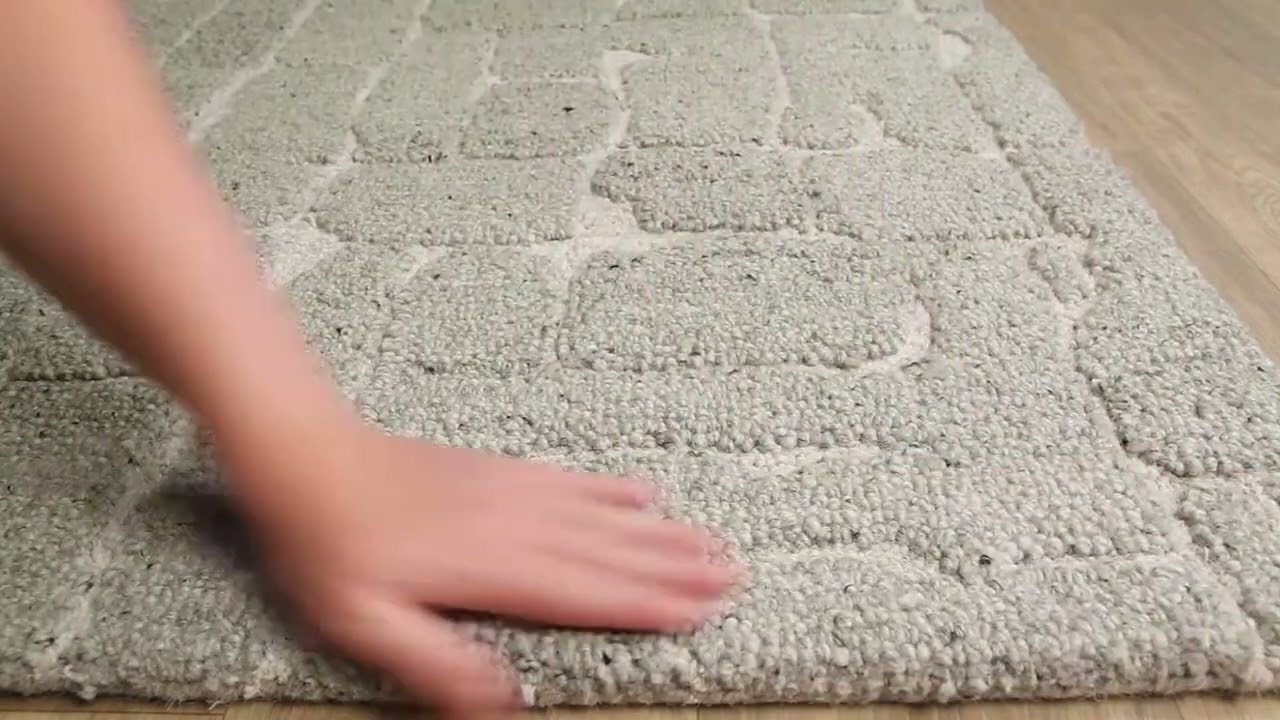 A hand tufted 100% wool rug with a soft gray abstract tile pattern — understated, textured, and built to last in any modern or transitional space.