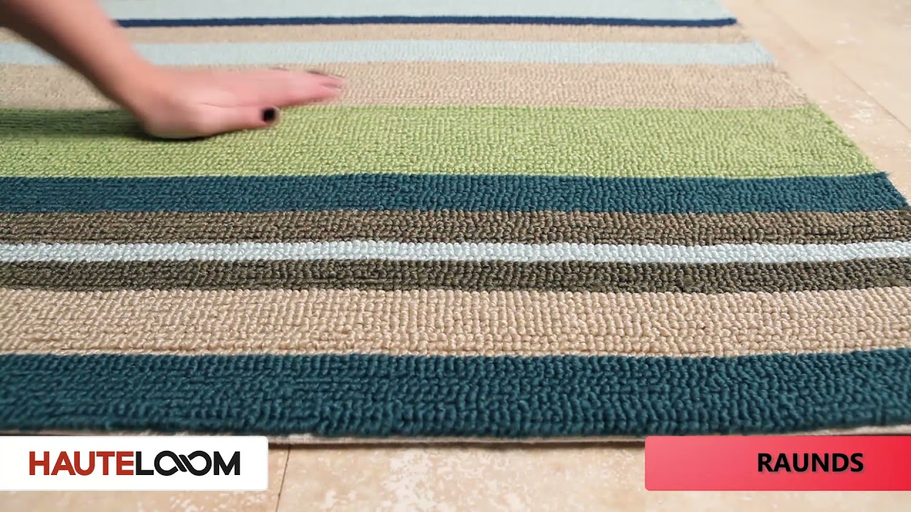 The Raunds Area Rug brings a fresh, coastal energy to any space with its bold horizontal stripes in a lively mix of navy, teal, sky blue, lime green, olive, and sandy beige. The multi-stripe pattern is clean and graphic — the kind of rug that instantly brightens a patio, covered porch, or sunroom without trying too hard. Hand hooked from 100% polypropylene with an outdoor latex backing, this rug is built to handle real life: it's stain resistant, weather resistant, and tough enough for high-traffic areas indoors or out.