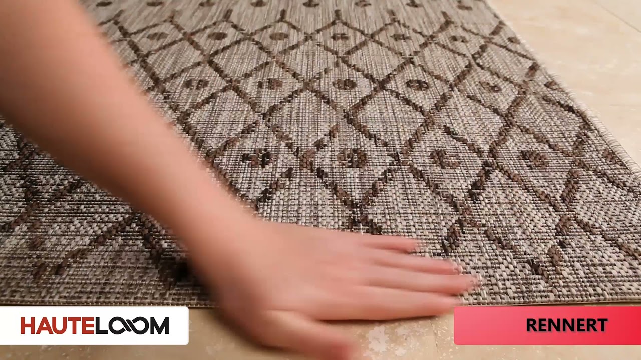 Warm beige and brown Moroccan diamond pattern meets outdoor-tough polypropylene — the Rennert is a flatweave that works as hard as it looks good.