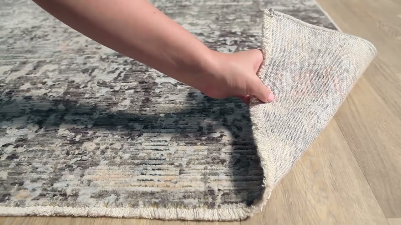 An artfully distressed abstract rug in warm grays, beige, and brown — the Riverhead brings contemporary depth and a refined worn-in look to any living space.