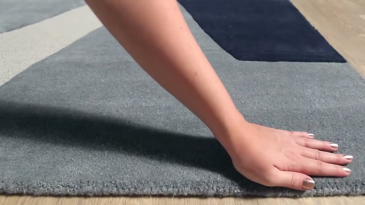 Bold abstract shapes in navy and slate blue make the Robbins a genuine conversation piece — hand tufted in 100% wool for lasting quality underfoot.