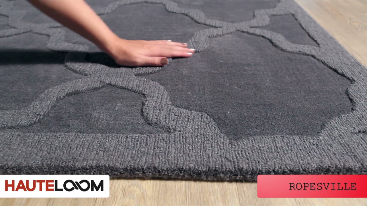 The Ropesville Wool Area Rug brings a quietly sophisticated tone-on-tone look to any room. Crafted from 100% wool and hand loomed in India, this rug features a classic Moroccan trellis pattern rendered entirely in shades of gray — a deeper charcoal base with lighter gray lattice lines that catch the light beautifully. The high/low pile construction adds subtle texture and dimension that you can both see and feel underfoot, making it far more interesting than a flat, printed rug.