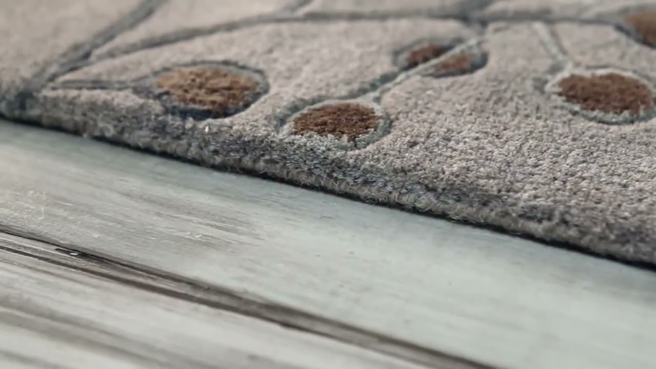 The Elsu area rug brings a quietly beautiful, nature-inspired look to any room with its delicate branching motifs and scattered berry-like dots scattered across a soft silver-gray wool ground. Hand-tufted in India from 100% wool, this medium-pile rug features a subtle high/low texture that gives the botanical pattern real depth and dimension — it catches the light differently depending on where you stand. The muted gray base is warmed by earthy brown branches and taupe accents, making it an effortlessly versatile piece that works in living rooms, bedrooms, and dining spaces alike.