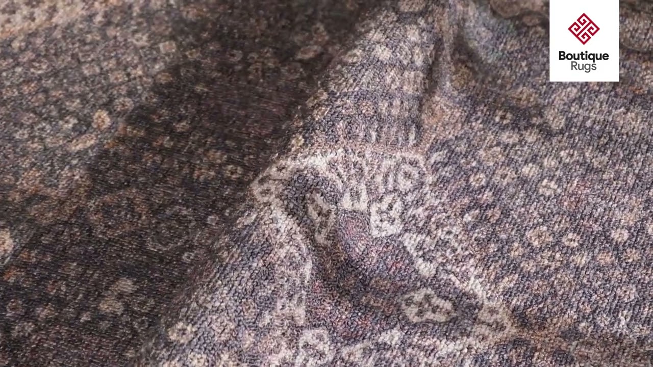 A faded Persian medallion design in dusty purple and beige — fully machine washable with a non-slip rubber back. Vintage style meets real-life practicality.