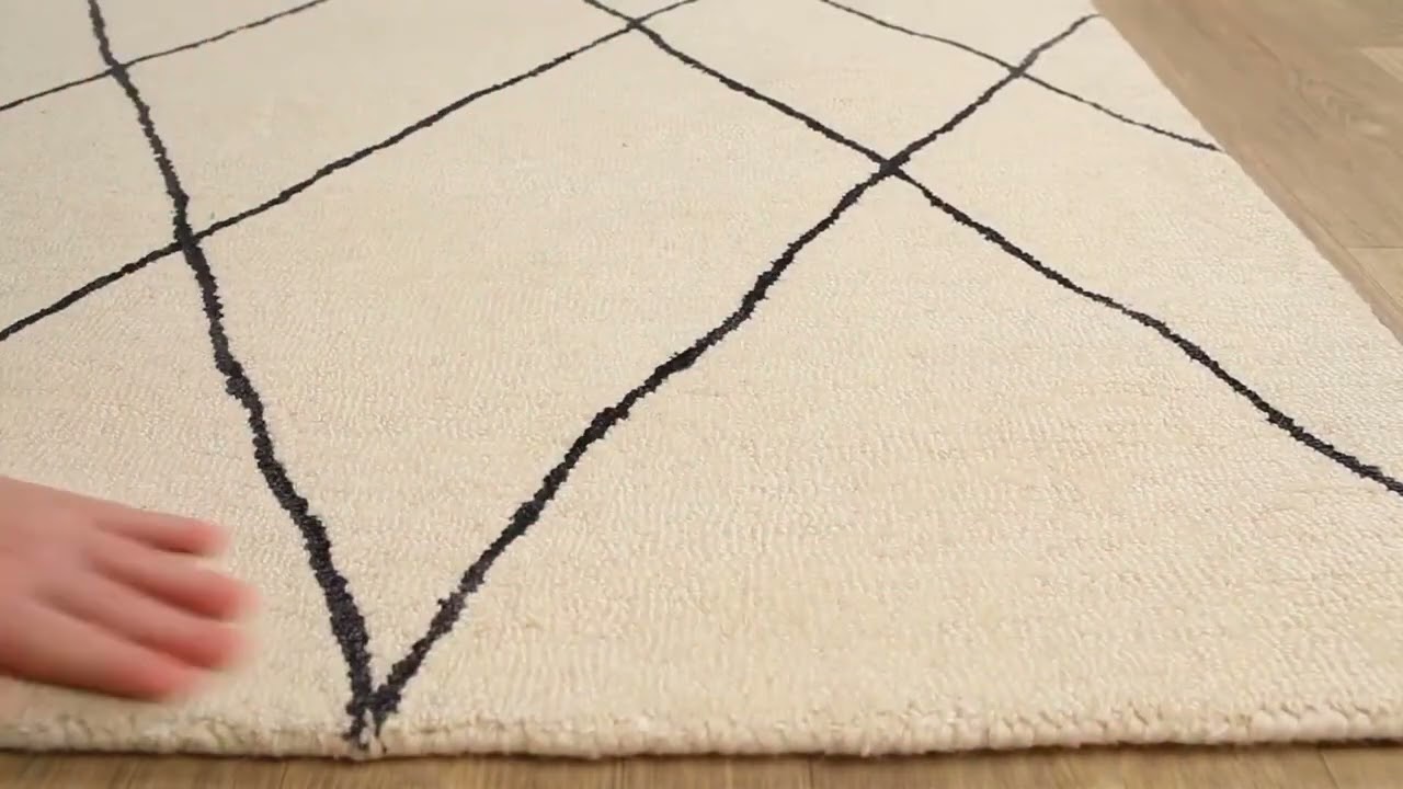 A cream wool canvas traced with softly irregular charcoal diamonds — the Strathalbyn brings Moroccan-inspired geometry to any modern or minimalist space with quiet, artisanal charm.
