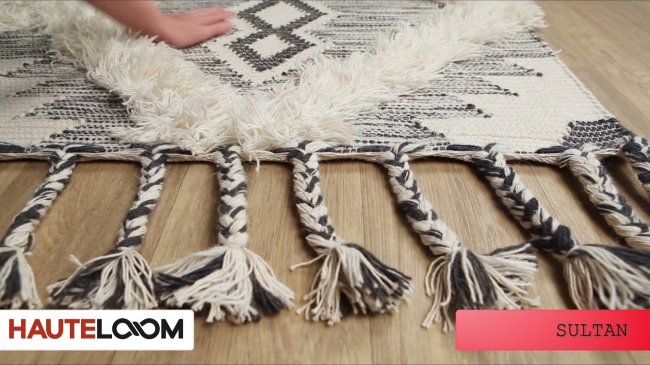 Bold tribal diamonds, plush 100% wool, and long cream tassels — the Sultan is the kind of rug that stops guests in their tracks and anchors any boho or global-inspired space.