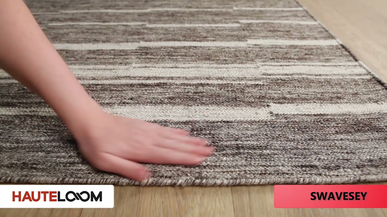 A hand woven wool and viscose flatweave with a modern broken-stripe pattern in heathered gray and cream — effortlessly versatile and easy to maintain.