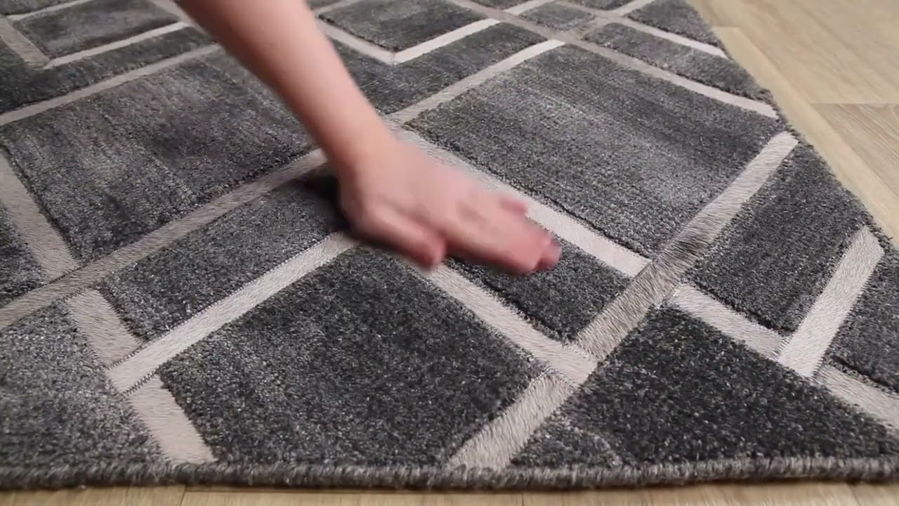 A striking diamond lattice in deep charcoal and silver — the Taclobo's viscose-leather blend gives this handcrafted geometric rug a subtle shimmer that elevates any modern space.