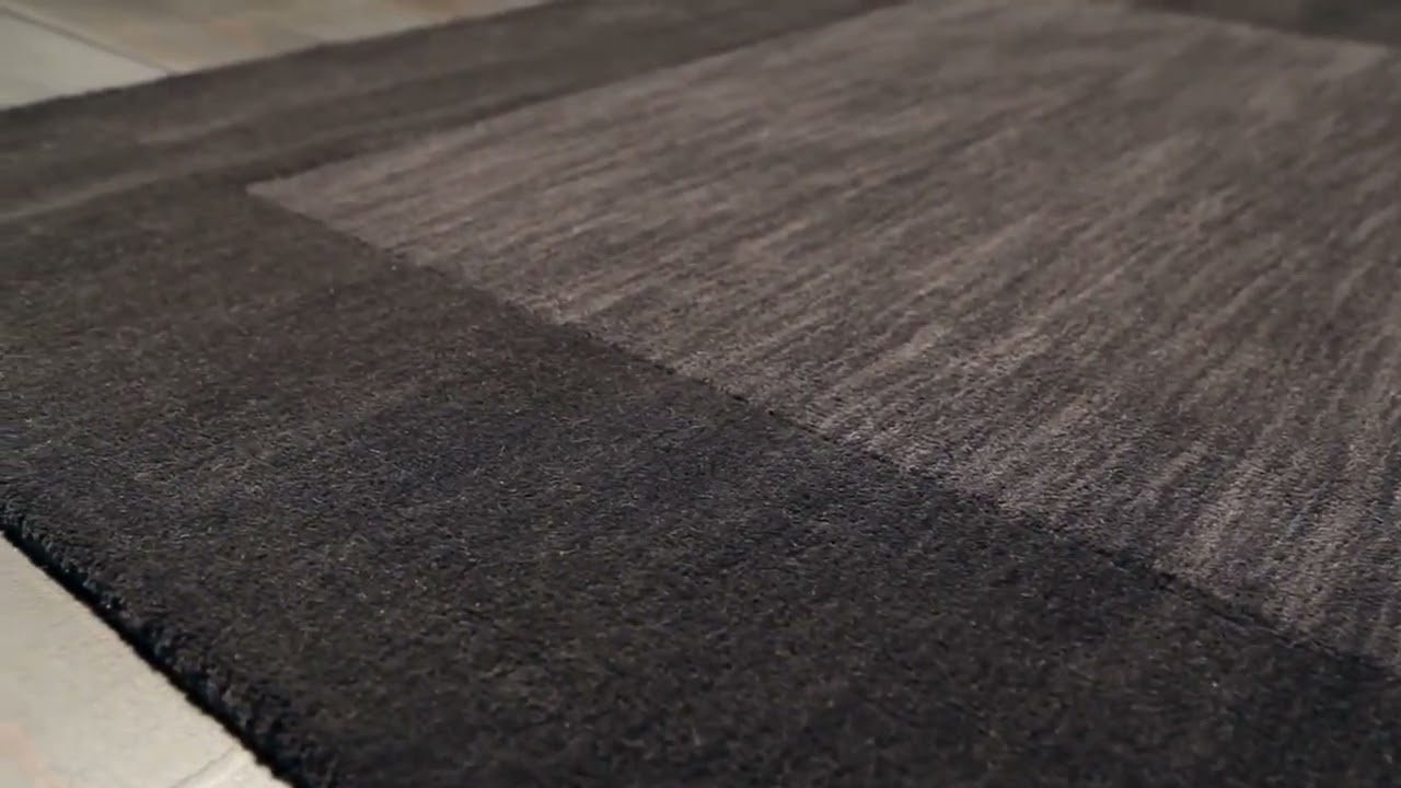 A clean, tone-on-tone charcoal border design in 100% hand-loomed wool — plush underfoot, endlessly versatile, and built to last.