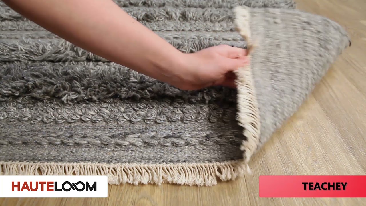 Hand-woven in wool and viscose with a plush 1.4" pile, the Teachey's tonal gray stripes and fringe edges bring relaxed boho warmth to any room.
