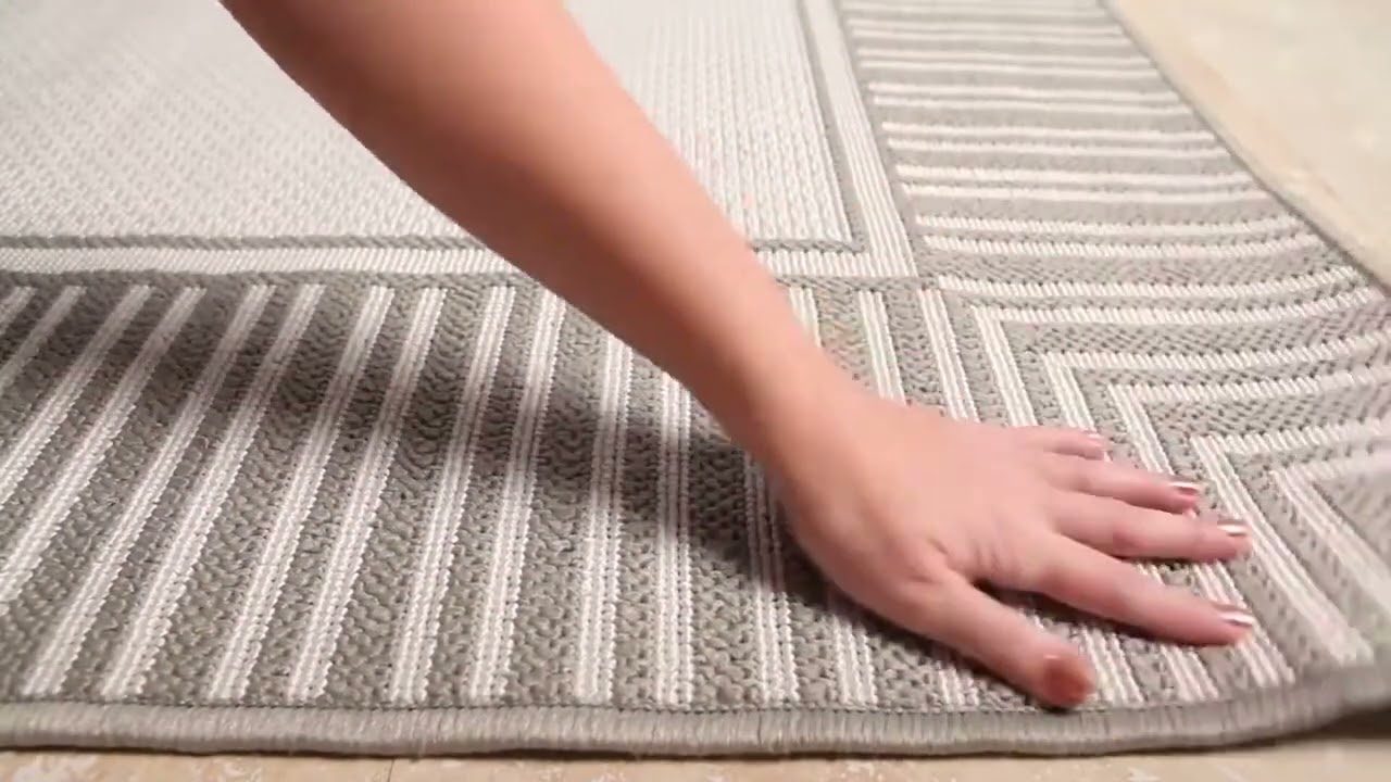 - Clean cream center with structured beige stripe border