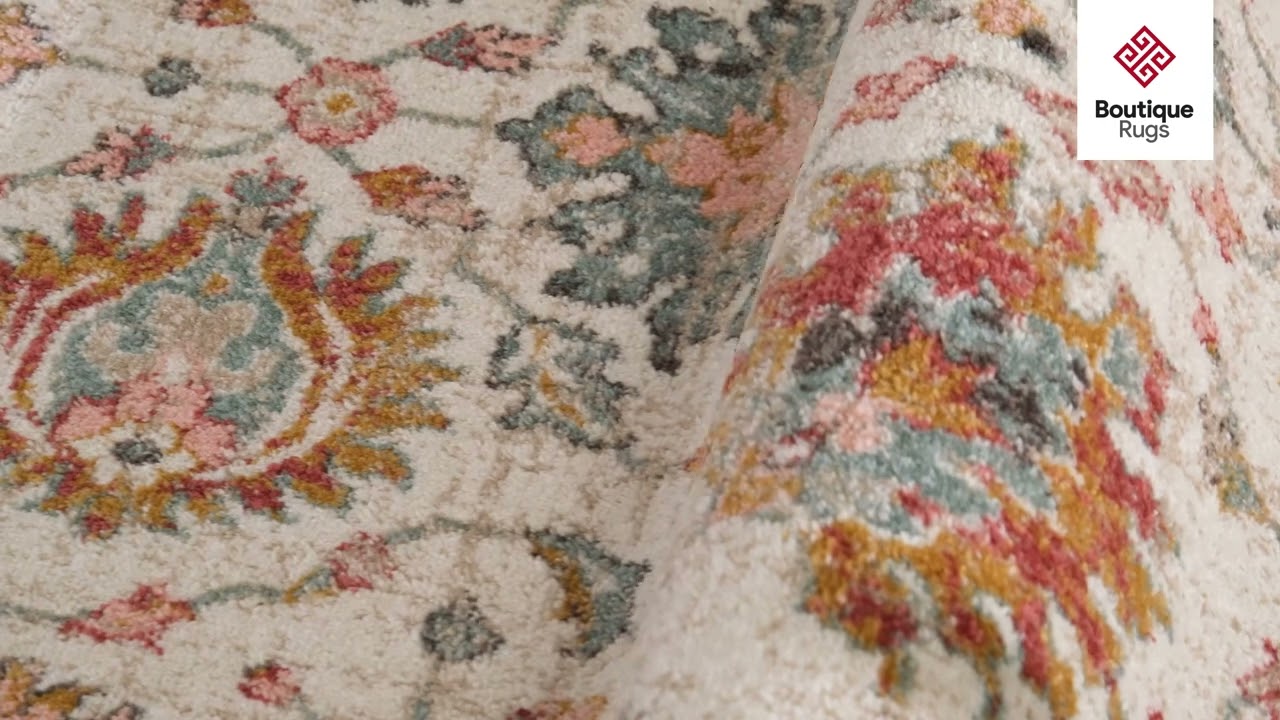 A burst of color in classic form — the Twilight rug layers vibrant pink, teal, red, and green floral medallions over a soft cream ground for a look that's both timeless and eye-catching.