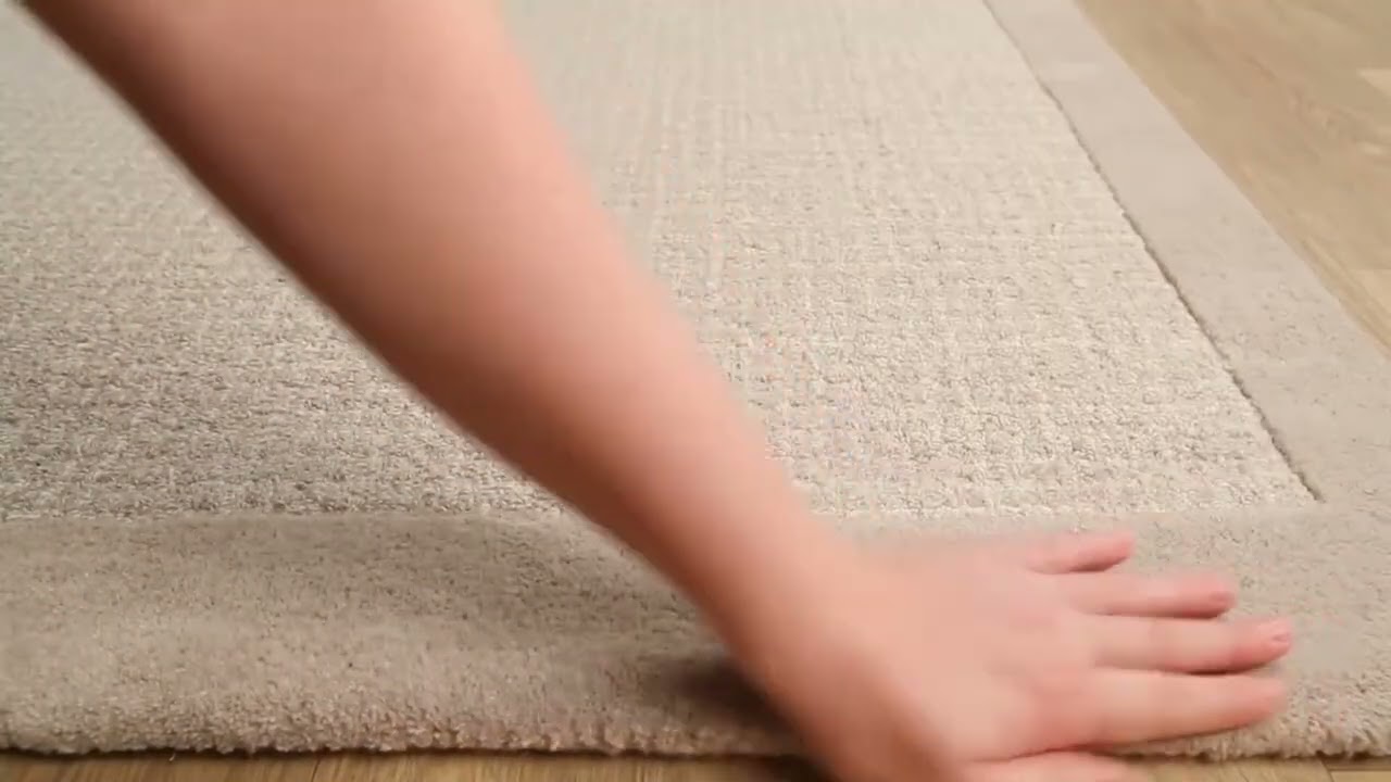 A softly textured 100% wool rug in warm cream and off-white, with a clean tonal border that adds quiet structure to any space.