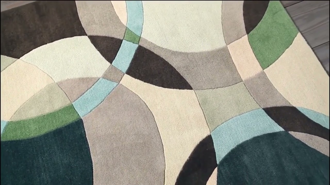 The Wyocena Wool Area Rug makes an immediate statement with its bold, overlapping circle pattern in a rich palette of teal, black, charcoal gray, sky blue, and sage green. Hand tufted from 100% wool in India, this contemporary rug brings a mid-century modern energy to any living room, bedroom, or open-plan space. The medium pile — sitting at 0.39 inches — delivers a satisfying softness underfoot while the high/low construction adds subtle texture that catches the light beautifully.