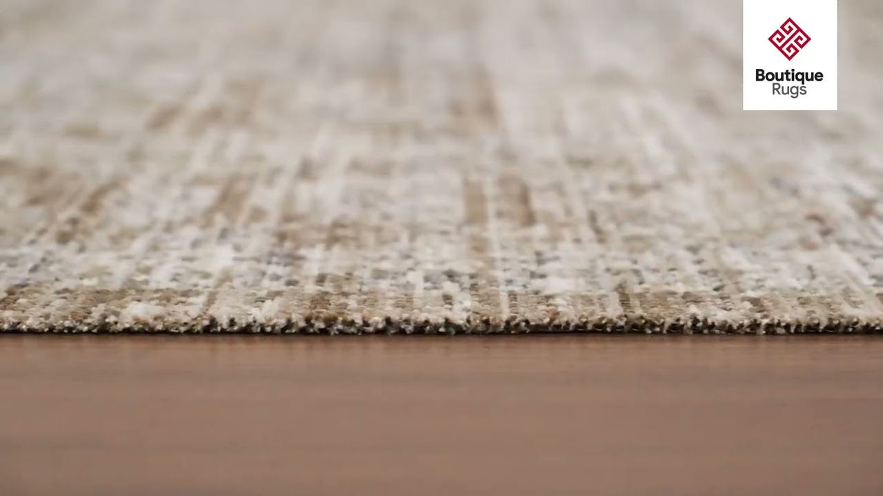 warm paletteA warm, earthy palette of deep brown and sandy tan dominates the field, with soft beige and muted gray accents woven through the intricate medallion and border details — the overall effect is a beautifully sun-faded, antique feel.